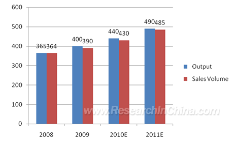 Output and Sales Volume of Insulation Materials in China, 2008-2011 (Unit: Kt)